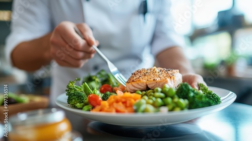 chef, salmon, vegetable, garnishing, kitchen, broccoli, dish, epicure, colourful, cooking, healthy, culinary, preparation, skill, delicious, appetising, meal, ingredient, eatery, alimentary, nourishment, wellness, dining, artisanal, handcraft, modern, plating, artistic, elegant, dynamic, food photography, cookery, lifestyle, balanced, fitness, contrast, vibrant, wholesome, dish