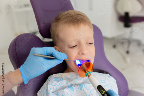 A child boy with a dentist in a dental office