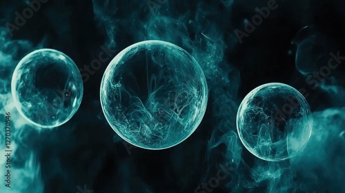 A cinematic magic scene with glowing bokeh orbs, mysterious smoke effects, and a deep dark background.