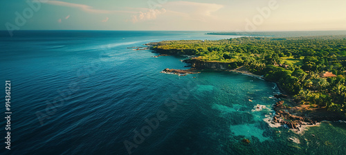 A Cinematic View of a Tropical Island Coastline from Above in Clear Midday Light