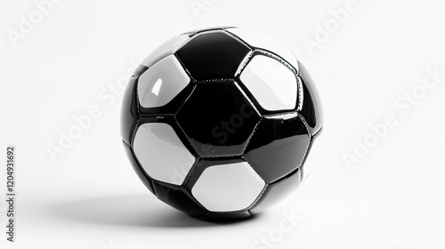 A classic black-and-white soccer ball with a clean and polished look, isolated on a bright white background.