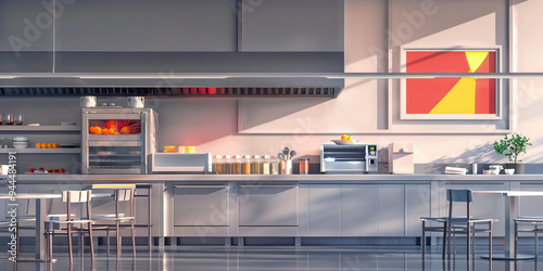 clean, minimalist, kitchen, eatery, stainless steel, appliance, grey, background, modern, sleek, professional, vibrant, interactive, educational, engaging, industrial, design, stylish, functional, efficient, futuristic, high technology, cutting edge, innovative, innovation, kitchen utensile, culinary, chef, cooking, cook, workspace