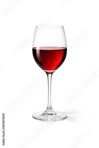 A clear crystal wine glass filled with red wine isolated on a clean background