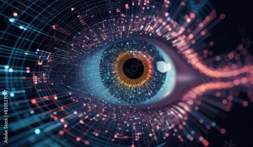 a close up of a blue eye with a black hole in the center