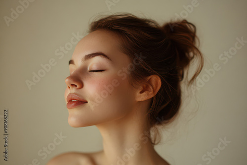 A close up of a girl's face with her eyes closed