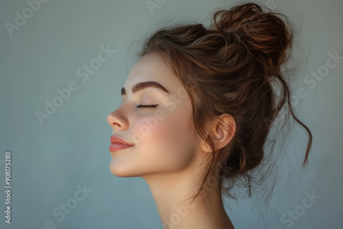 smile, woman, nose, health, cheek, hair, lip, shoulder, eyelash, ear, neck, flash, jaw, lipstick, make-up, gesture, happy, makeover, black, long, step, brown, art, layered, peach, portrait, fashion, fun, illustration, photo, beauty, face, model, skin, clean, make-up, eye, young, person, care, skincare, glamour, fresh, lip, natural, studio, closeup, spa, people