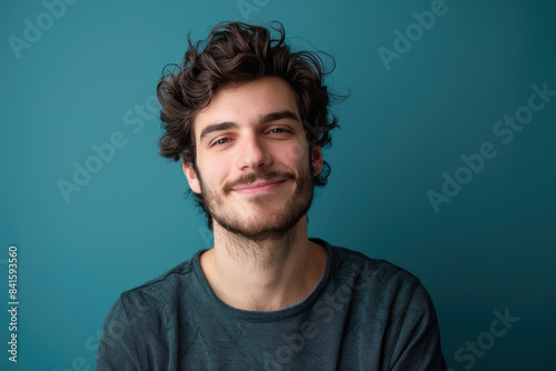 A close up portrait of a young man with a subtle smile