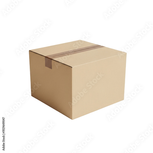 A closed cardboard shipping box with brown packing tape sealed on isolated on a transparent background