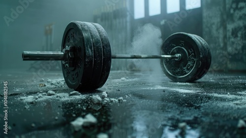 barbell, chalk, dust, weightlift, gym, physical exercise, fitness, exercise, weight, iron, metal, training, strength, power, heavy, lift, dripped, floor, ground, concrete, black, white, grey, background, blur, shadow, dark, light, moody, intense, gritty, textured, macro, sport, athlete, bodybuilder, strong, muscle, perspiring, grit, determination