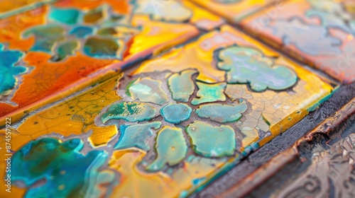 tile, closeup, colourful, inlaid, pattern, smooth, surface, vibrant, design, detailed, handcraft, artistic, flooring, decorative, intricate, geometry, traditional, modern, texture, finish, glazed, quality, craftsmanship, artisan, hard-wearing, mosaic, elegance, aesthetic, symmetric, ornamental, stylish, decor, home, ceramic, visual, interior, exterior, construction, architecture, precise, layout, grout, matte, elaborate, high-coloured, seamless, heritage