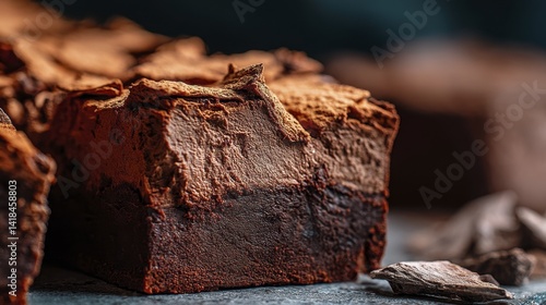 A close-up of a rich, intensely flavored dark chocolate bar with a slightly textured surface - rich squares focus dessert textured