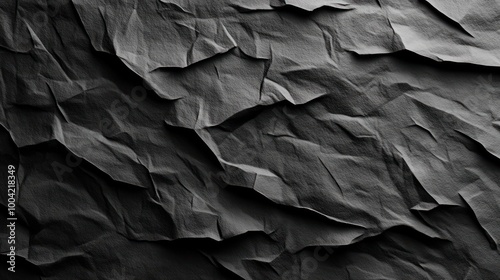 A close-up of crumpled black paper texture, showcasing deep creases and shadows.