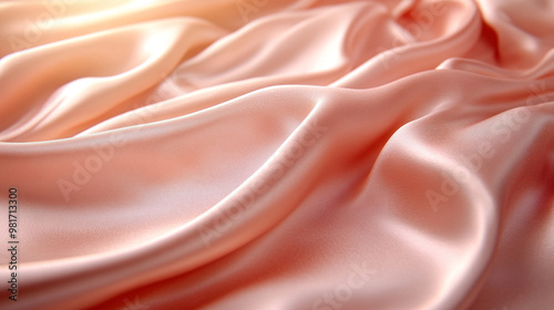 A close-up of delicate peach silk fabric, showcasing its soft texture and graceful drape, perfect for elegant designs and backgrounds.