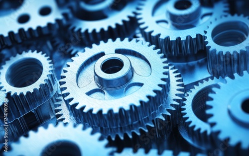 A close-up of interlocking blue gears, showcasing intricate details and a metallic finish, symbolizing mechanics and engineering.