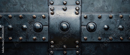 A closeup of rivets and metal textures, forming a detailed and complex abstract industrial background