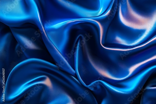 A close-up of smooth, flowing blue satin fabric with vibrant sheen and texture. Concept Satin Fabric Texture, Close-Up Photography, Vibrant Blue Hue, Soft Flowing Material, Sheen and Light Play