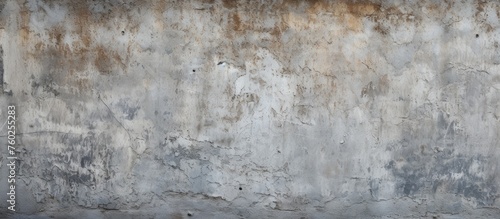 A closeup shot capturing the textures of a grey concrete wall with peeling paint. The combination of wood and rock elements create a visually striking pattern in this freezing urban art scene