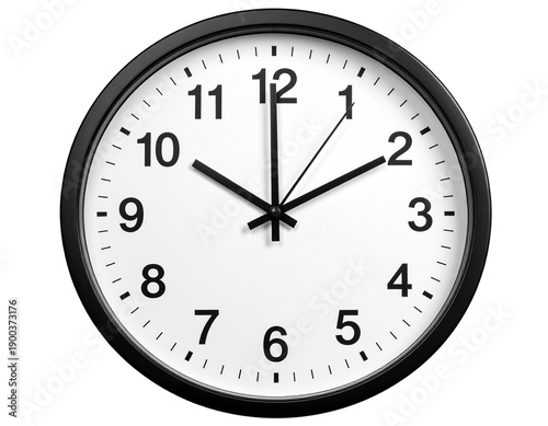 clock, time, analog, watch, horologe, dial, face, number, numeral, hours, minute, second, hand, pointer, wall, circular, round, white, black, background, isolated, clean, simple, modern, classic, traditional, domestic, office, indoor, measurement, precision, punctuality, schedule, agenda, meeting, deadline, appointment, past, present, future, telling, marking, tracking, passing, moment