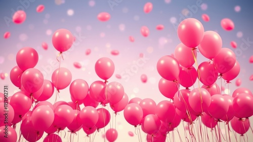 A cluster of pink balloons float against a soft, pastel sky, filled with joy and celebration, symbolizing dreams taking flight