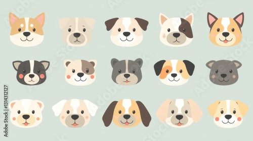 dog, face, puppy, pet, canino, breed, cartoon, illustration, drawing, animal, design, art, graphic, set, collection, cute, happy, friendly, domestic, variety, portrait, paw, different, character, adorable, pattern, fur, smiling, cheerful, joyful, companion, play, love, children, funny, sweet, small, young, friendship, pedigree, isolated, diverse, symbol, icon, element, composition, emotion