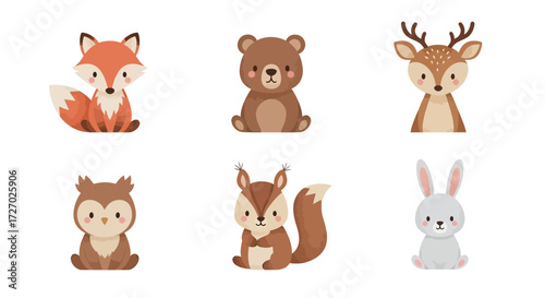 A collection of cute cartoon forest animals on a light backdrop, each showcasing unique characteristics Vector illustration