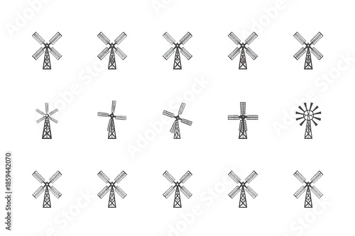 A collection of various windmill icons on a white background