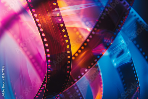A colorful abstract background incorporates a film strip, adding a creative visual element
