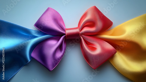 A colorful rainbow satin pride bow for gift and present wrapping promoting unity, diversity and LGBTQ inclusion in a beautiful ribbon