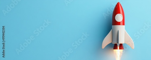A colorful rocket launching against a bright blue background, symbolizing innovation and exploration in technology.