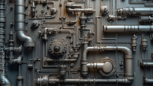 A complex network of industrial tubing and pressure regulators, assembled with meticulous craftsmanship, forming an abstract yet functional mechanical artwork