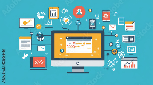 electronic mail, lead, management, sale, social, platform, flat, content, web, business, keyword, technology, social network, vector, artificial intelligence, content management system, diagram, illustration, cyberspace, search engine optimization, communication, chat, icon, crm