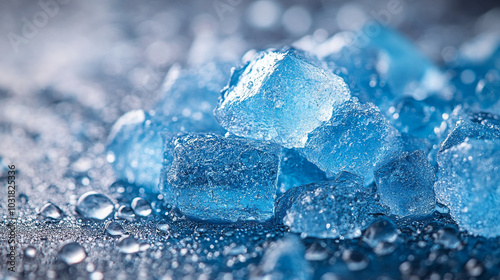 a cool icy light texture. A close-up of crushed ice with a cool blue hue