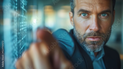 man, businessman, touch screen, touching, pointing, directing, presentation, digital, tech, ai, meeting, business, corporate, executive, office, datum, engagement, modern, teamwork, communication, technology, strategy, collaboration, professionalism, leadership, analysis, workplace, insight, design, meeting, sharpened, discussion, planning, innovation, success, person, people, man, photogenic