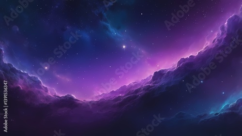 A cosmic-inspired gradient background with deep space blues and purples