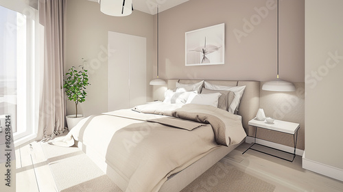 bedchamber, light, background, white, pastel, soft, bed, cosy, rest, hotel, interior, window, sunlight, apartment, double, pillow, modern, fashionable, stylish, minimalism, lamp, tidy, neutral, beige, empty, cosy, material, comfort, relaxation, clean, natural, textile, daylight, curtain, poster, art, color image, colours, picture, design, artistic, imagination, creative, fantasy, illustration, room, indoor, furniture