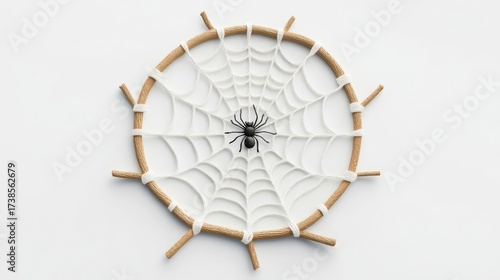 A creative display of a spider on a web, showcasing nature's intricate designs and artistry in a minimalistic style.
