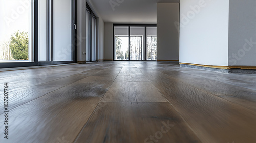 A cutaway view of an underfloor heating system beneath wooden flooring, offering space for text