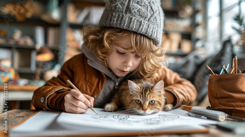 cute, boy, cat, absorb, picture, artistic, moment, childhood, pet, companionship, creativity, drawing, together, friendship, art, innocence, bonding, adorable, scene, creative, expression, play, joyful, young, artist, interaction, endeavour, companion, animal, children, bond, artful, connection, development, playful, exploration, imagination, cosy, wholesome, activity, expressive, children, collaboration, heartwarming, session, talent, affection, tender