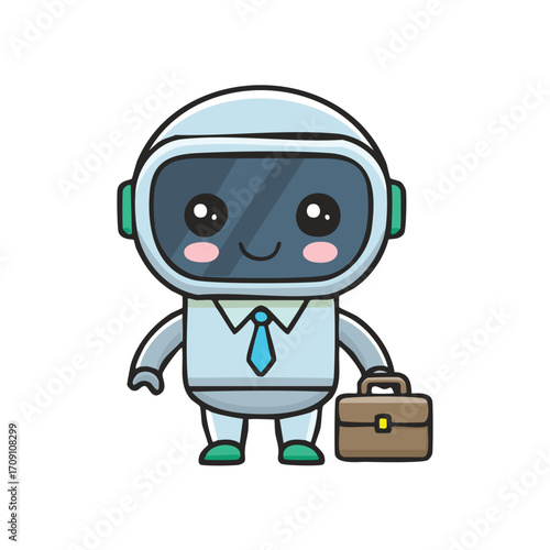 A cute cartoon robot carrying a briefcase, showcasing a friendly expression and a professional outfit. This digital illustration portrays the fusion of technology and approachability