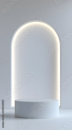 white, display, stage, pedestal, product, studio, modern, minimal, interior, background, empty, clean, abstract, design, presentation, platform, cylinder, shape, light, arch, structure, illumination, architectural, showcase, simple, smooth, surface, round, bright, subtile, blank, space, wall, elegant, pristine, contemporary, render, detail, geometry, scene, style, element, daylight, vertical