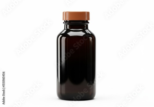 A dark brown glass bottle with a brown plastic cap is isolated on white background