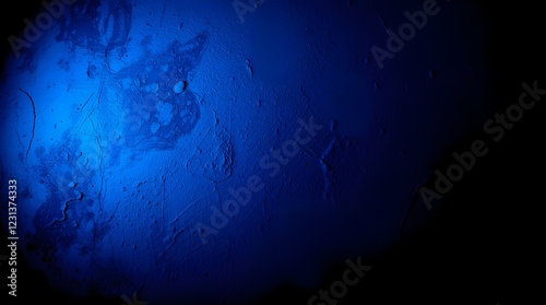 A deep blue light illuminates part of a textured surface, creating an abstract and mysterious atmosphere. Shadows and variations in the blue hues add depth and intrigue.