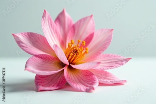 A delicate and colorful flower in full bloom on a plain surface, white, petals