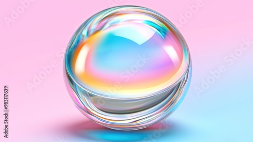 A delicate soap bubble floats gently on a pastel background, capturing and reflecting soft hues of blue and pink, evoking a tranquil, dreamy atmosphere