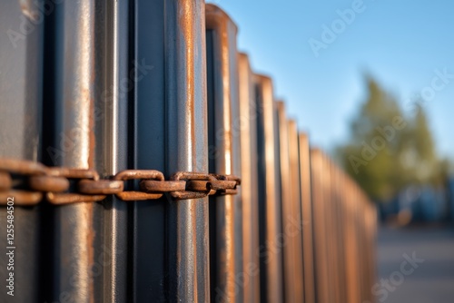 A detailed close-up of a rusty chain locked onto a fence, symbolizing security, resilience, and the passage of time, creating a compelling visual narrative about barriers.