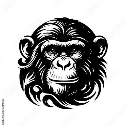 ape, animal, art, black, chimpanzee, creature, dark, drawing, face, fur, gorilla, graphic, ink, logotype, mammal, monkey, nature, primate, vignetting, style, tattoo, tribal, wildlife, zoo