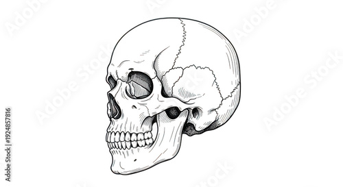 skull, human, skeleton, bone, head, face, profile, view, teeth, eye, socket, line, drawing, black, anatomy, medicals, art, design, graphic, symbol, single, object, simple, minimal, clear, crystal, clean, detailed, intricate, artistic, rendering, visual, representation, educational, informative, scientific, biological, anatomical, alpha