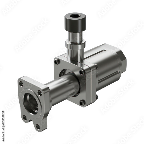 A detailed view of a metallic pump component, showcasing its precision engineering and intricate design elements.
