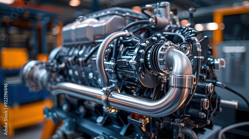 A diesel engine's turbocharger and intercooler, showcasing the enhancements for power and efficiency in commercial vehicles.