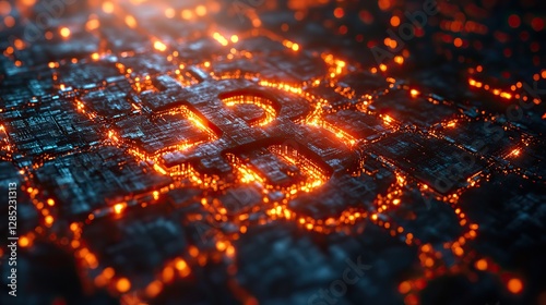 A digital brain made of blockchain chains with a Bitcoin symbol, representing the fusion of technology and finance. This boldly evokes innovation and the future of digital currency.